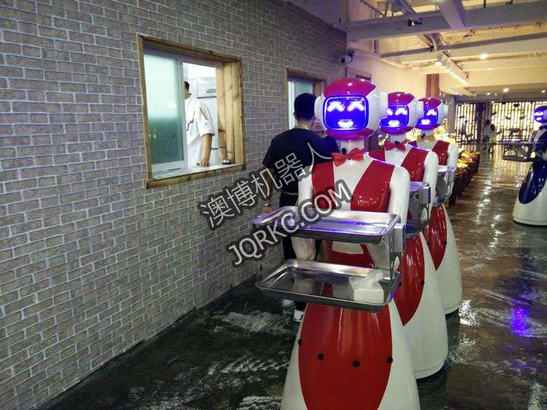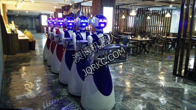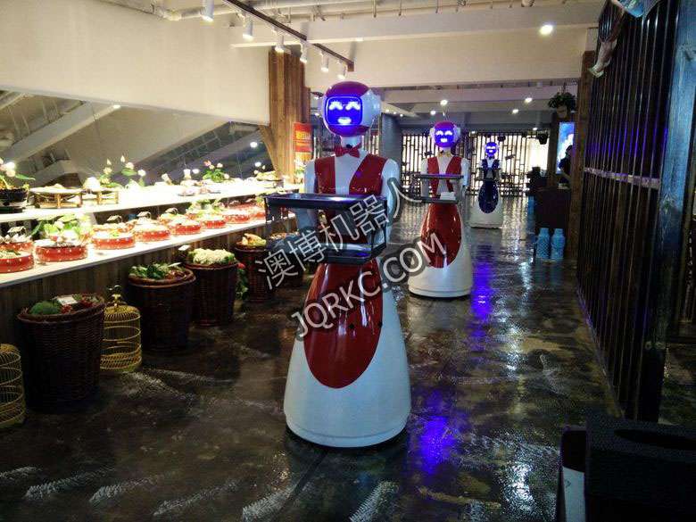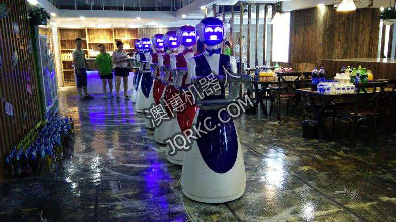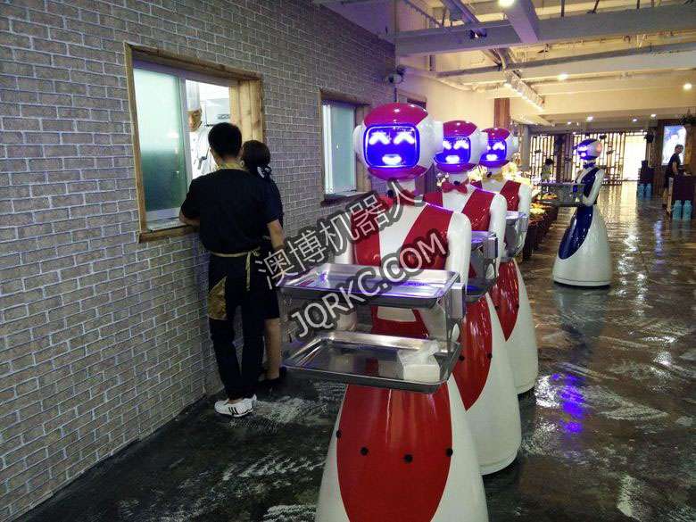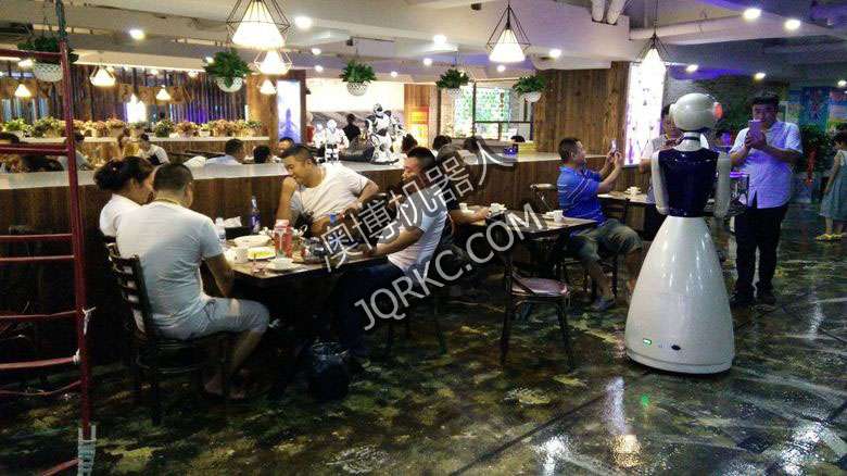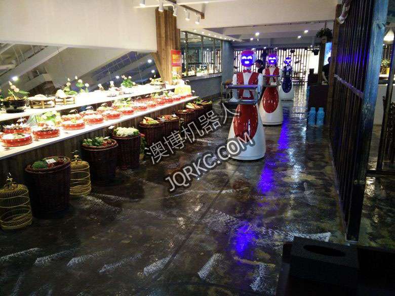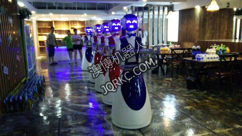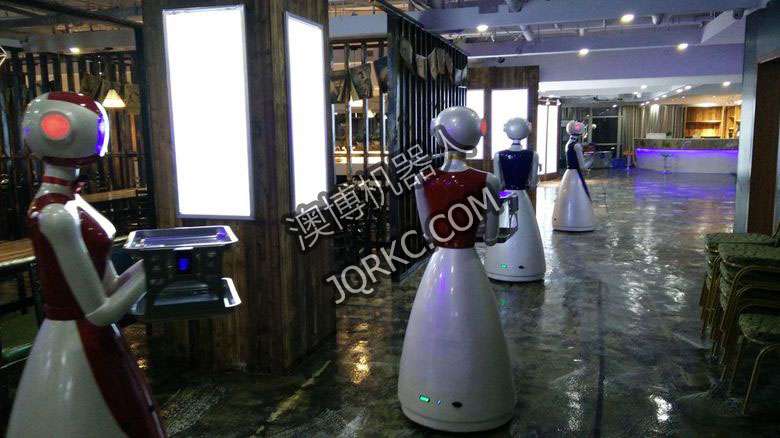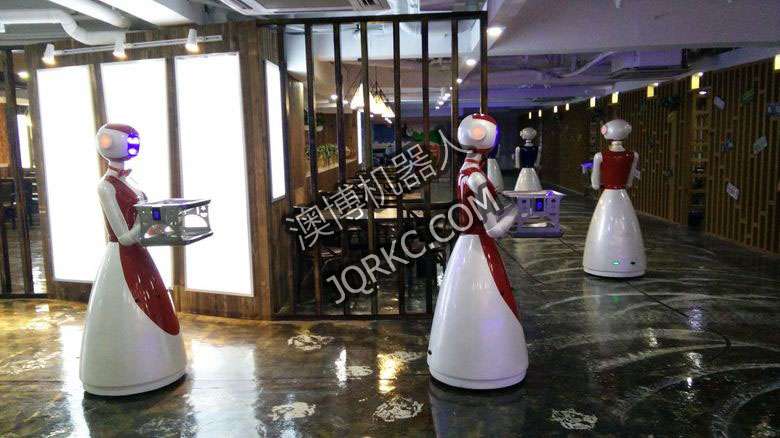 機(jī)器人餐廳使用六臺送餐機(jī)器人現(xiàn)場