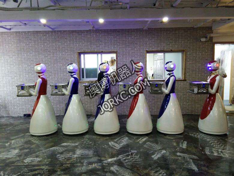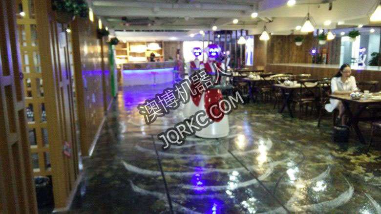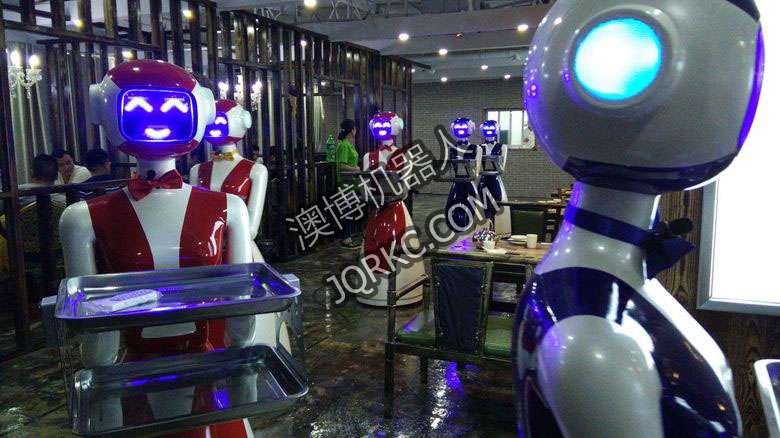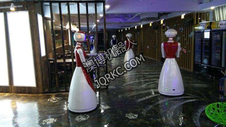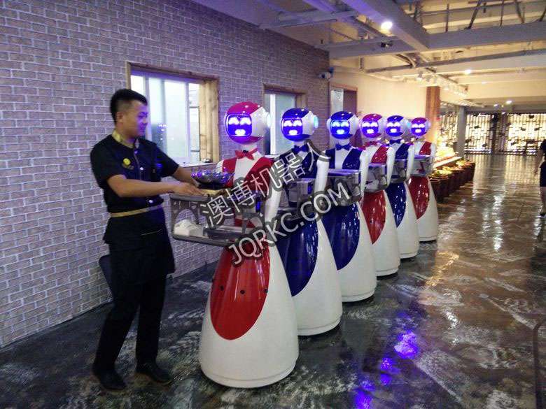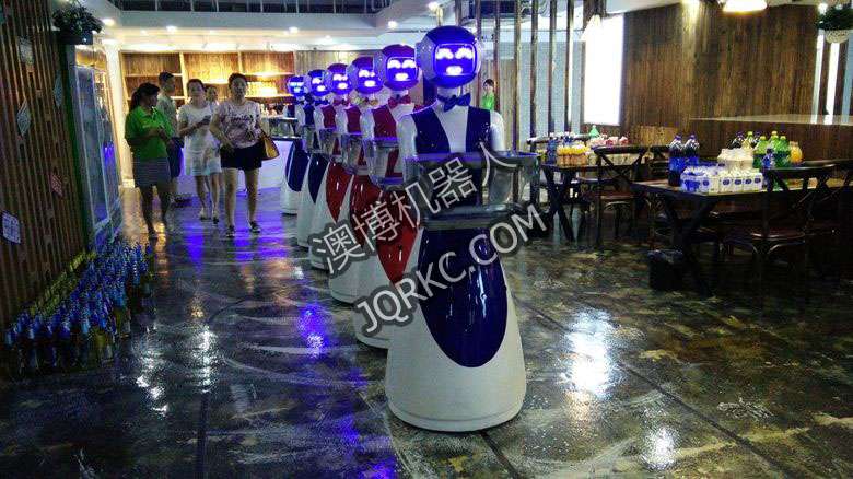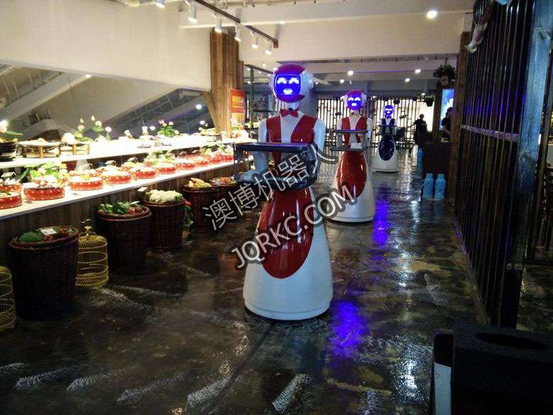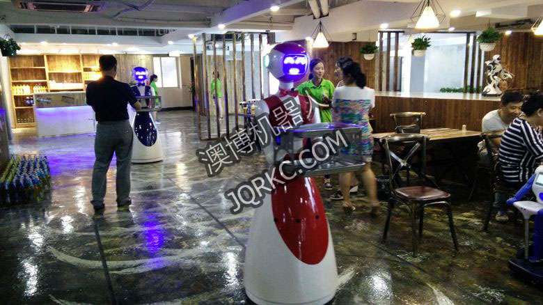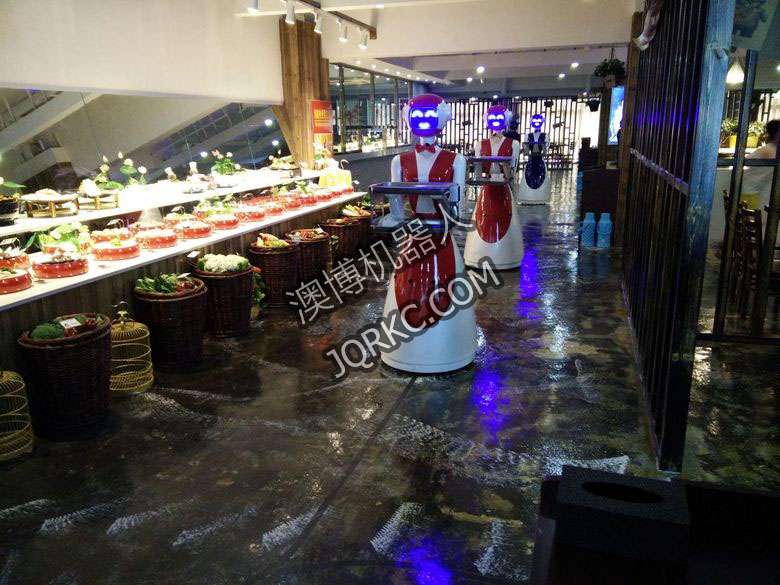 機(jī)器人餐廳使用六臺送餐機(jī)器人現(xiàn)場