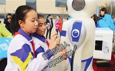 “小朋友,你和機(jī)器人提問,它就能回答你天氣問題。”氣象志愿者給孩子講解如何使用機(jī)器人。媽媽將兒子抱到與機(jī)器人同高,讓他和氣象機(jī)器人“對起話”來。