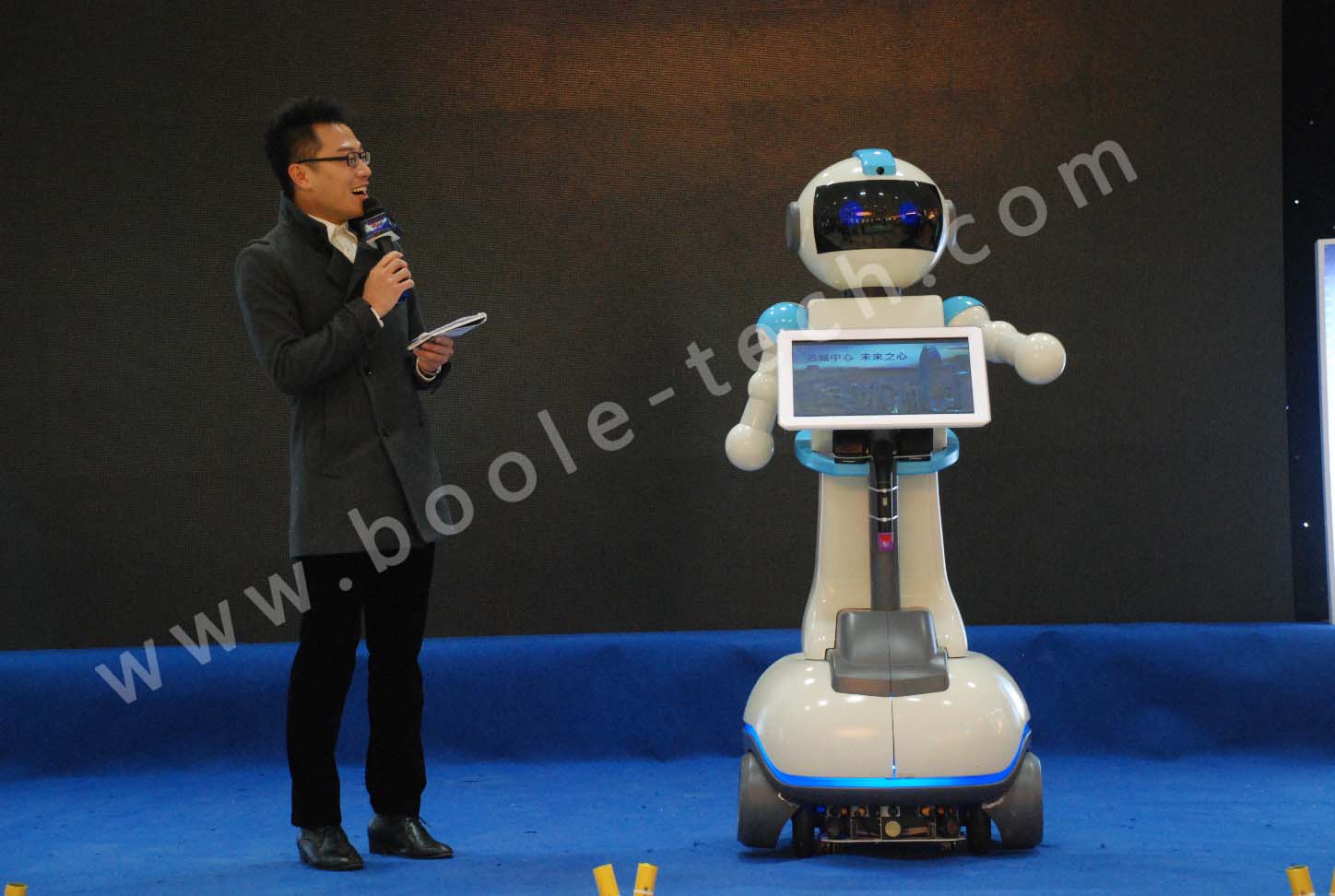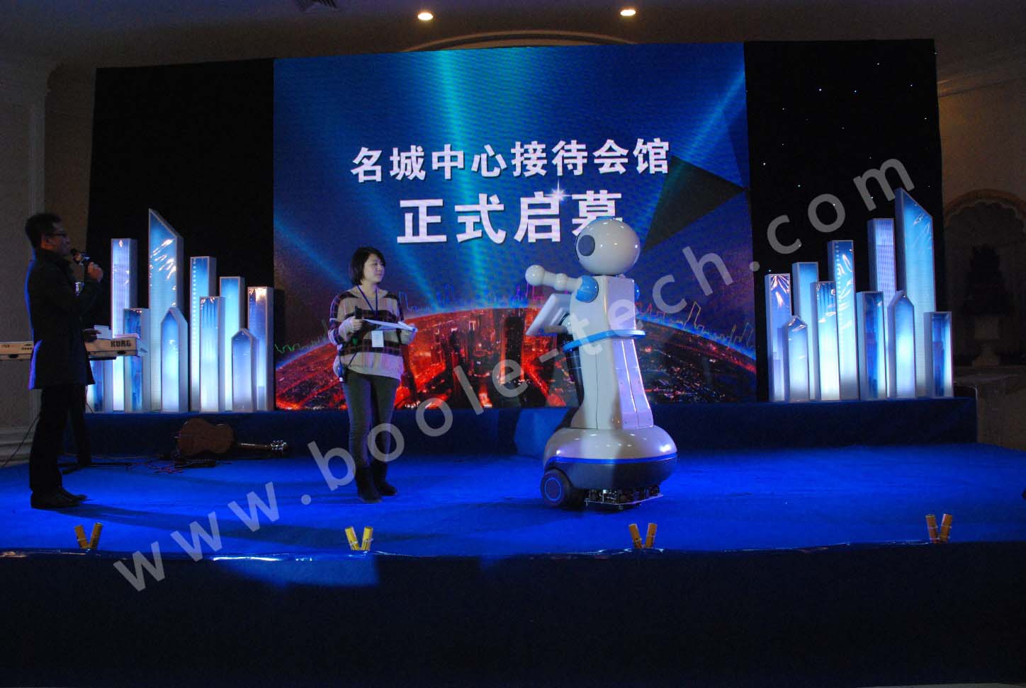 2013年1月12號(hào),福州東方名城中心地產(chǎn)招商儀式啟動(dòng),東方名城地產(chǎn)總裁與太空迎賓機(jī)器人互動(dòng)揭開開幕式!