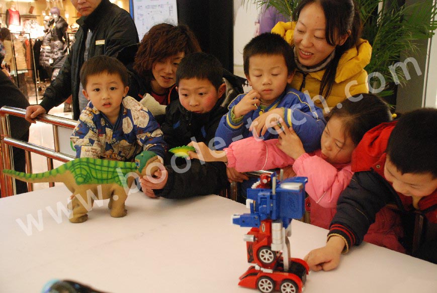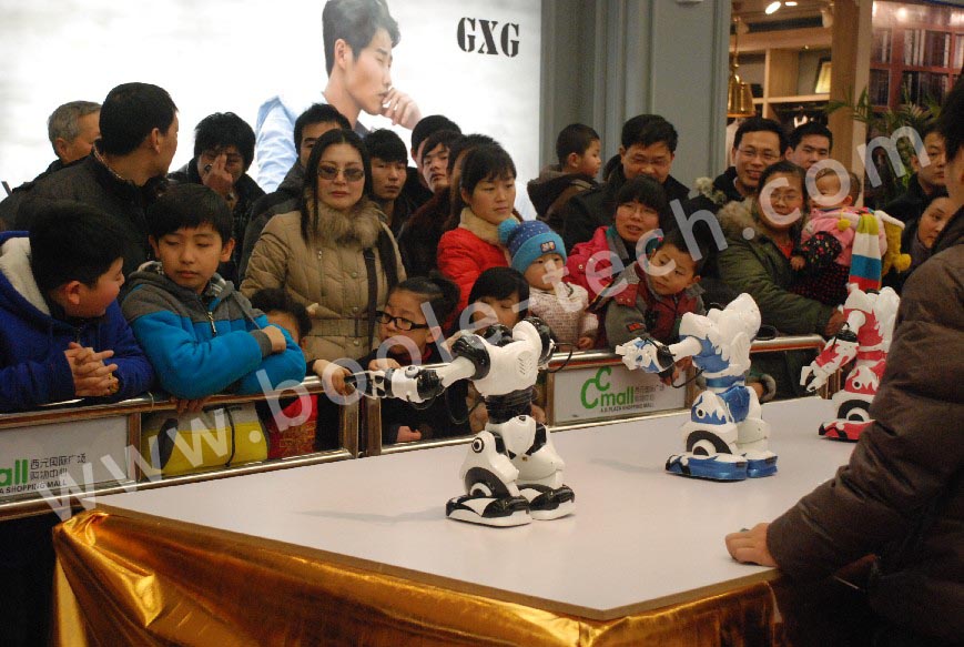 小型舞蹈機(jī)器人,是本場表演的重點(diǎn),它能表演俯臥撐、仰臥起坐、前滾翻、后滾翻,表演節(jié)目:俏夕陽(舞蹈)、街舞、南非世界杯舞蹈;而最激動(dòng)人心的還是火熱的江南style舞蹈,更有小朋友跟著舞蹈和機(jī)器人一起跳了起來。