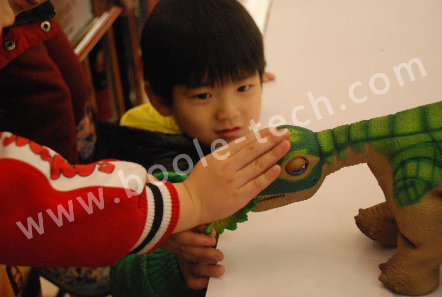 機(jī)器恐龍,機(jī)器恐龍具有一體成型的外觀,逼真的外形柔軟的皮膚,它可以仿真剛誕生到認(rèn)知主人的過程,撫摸頭部它會(huì)很享受的眨眨眼,拍拍背部它會(huì)從睡覺中蘇醒。