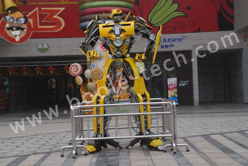 遙控機(jī)器人,該機(jī)器人有酷炫的外表,擁有多套表演節(jié)目,通過遙控組合可控制機(jī)器人行走,揮舞手臂,說話等操作。