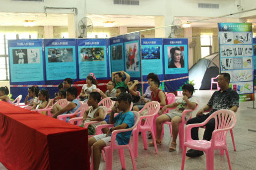 這是發(fā)生在海南瓊海的某軟件職業(yè)技術(shù)學(xué)院藝術(shù)館開展的科技夏令營活動,其中智能機(jī)器人科普展覽的一幕。從??趯3舔?qū)車趕來的賀女士,帶著女兒看完了展覽,感受了這一切后,交口稱贊,要求女兒回去后寫一篇心得筆記。