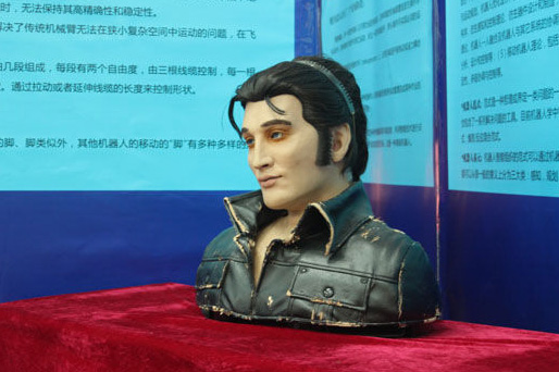 除了跳舞機(jī)器人,還有高仿真人貓王、高仿真恐龍機(jī)器人、會打兵乓球的機(jī)器人、家庭小王子機(jī)器人、腦電波測試儀機(jī)器人、紅蜘蛛機(jī)器人等。