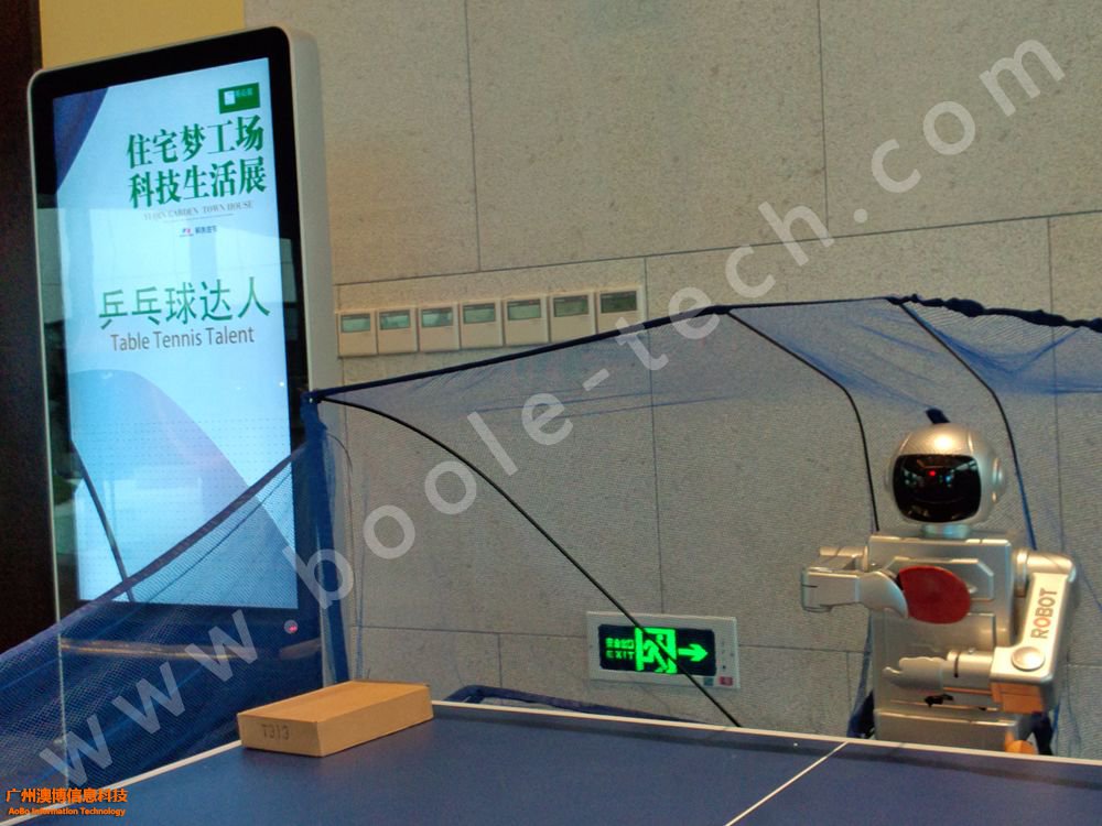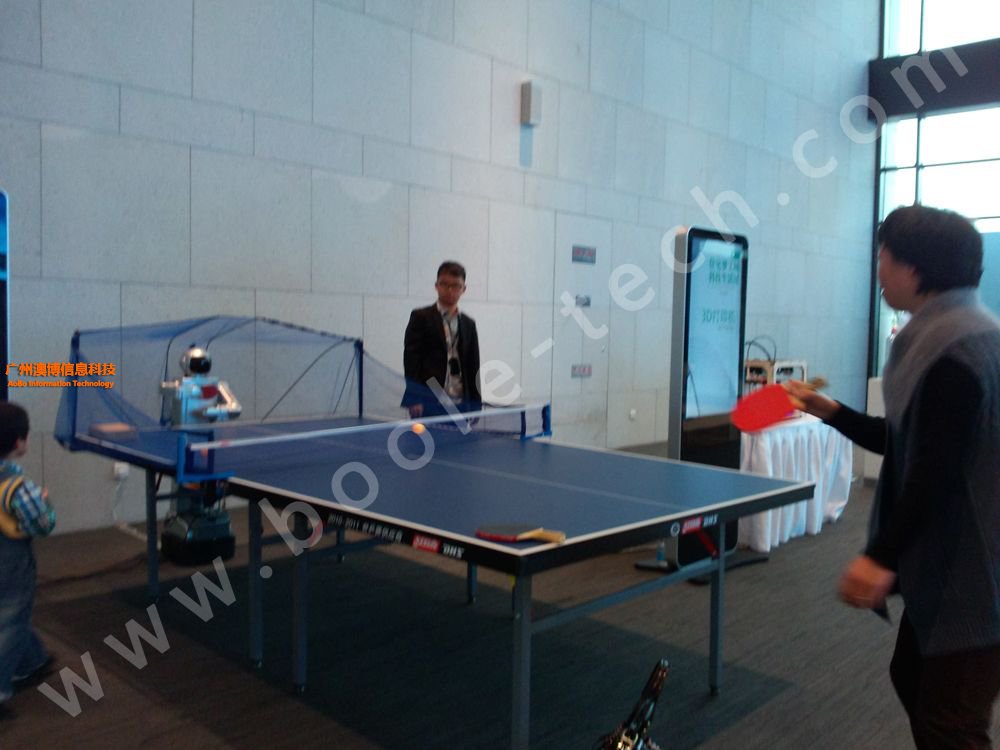 接著是機(jī)器人互動(dòng)區(qū),這是一款能打乒乓球的機(jī)器人,可通過調(diào)節(jié)控制乒乓球機(jī)器人發(fā)球的速度和角度。
