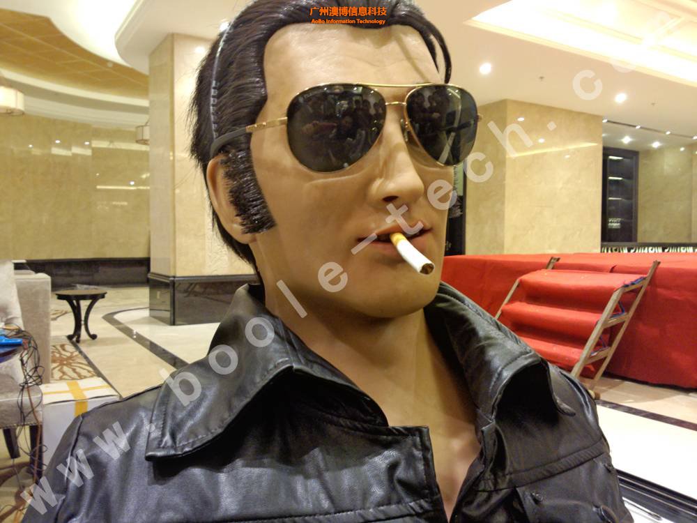 這個智能防真機器人更是將仿生學(xué)及智能電子控制真正完美的結(jié)合,很難另人想像,在一副幾乎可以亂真的面孔下,五官居然全都可以活動自如,配上他的成名曲,跟著音樂節(jié)拍,眼睛忽閃忽閃,時而注視你,時而望向遠方,挑挑眉毛,搖頭晃腦,仿佛一代巨星復(fù)活。