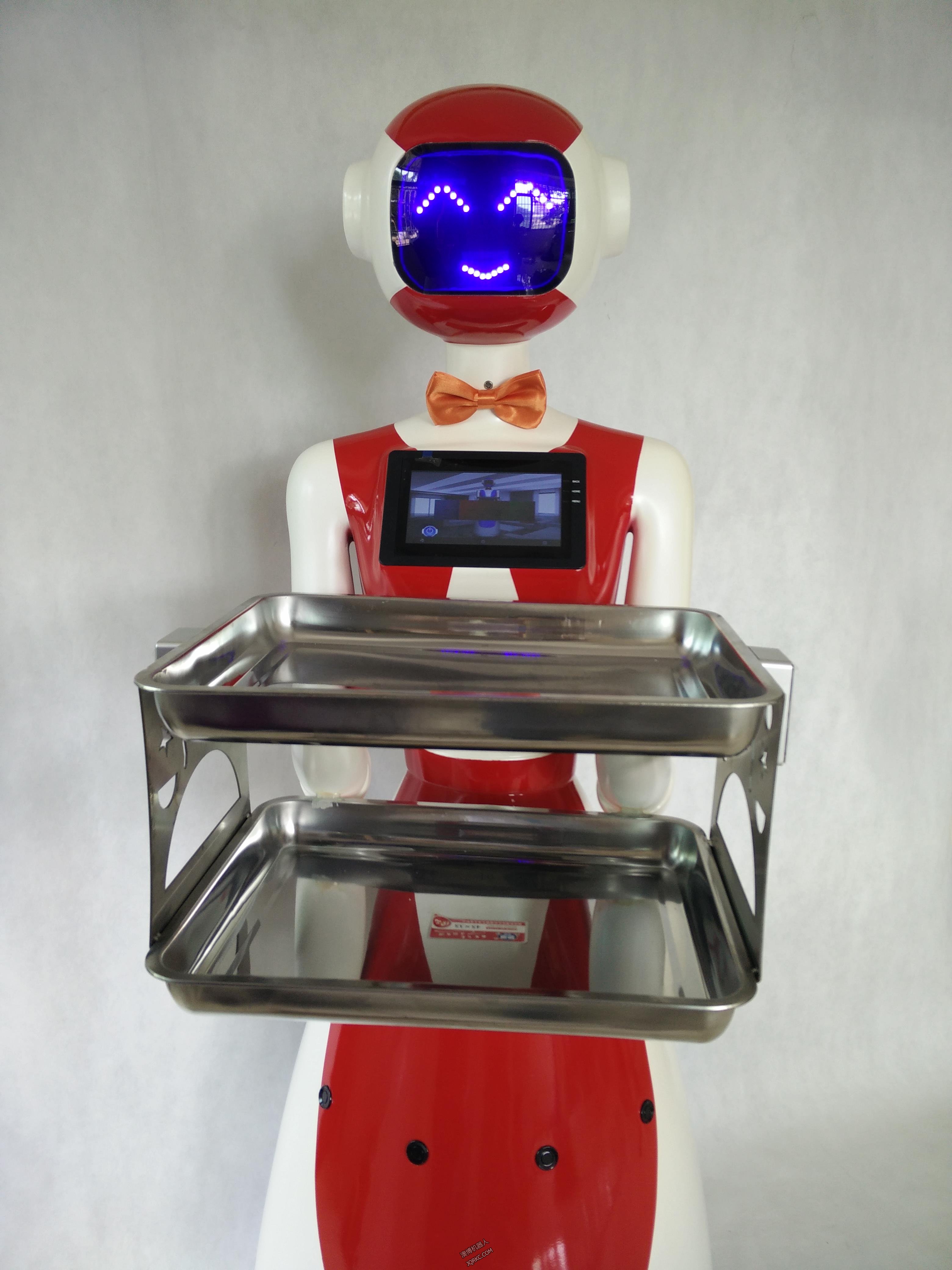 送餐機(jī)器人外殼主要材料有玻璃鋼、亞克力、塑料等??稍诓蛷d、房地產(chǎn)銷售中心、KTV、酒店、會所、慶典、婚慶、 晚會、展會、商場等場所用來迎賓、送餐、導(dǎo)購、送茶、送鮮花、送傳單、送禮品、送禮品在舞臺上和主持人互動節(jié)目、送婚禮戒指和主持婚禮、頒獎和主持頒獎等。