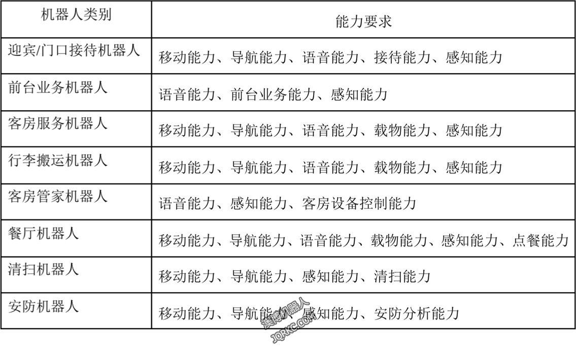 具體來說,一個酒店內(nèi)交由效力機(jī)器人結(jié)束的工作包含了八項(xiàng),對應(yīng)八類不一樣的效力機(jī)器人,而這八類效力機(jī)器人的才干懇求也不一樣。